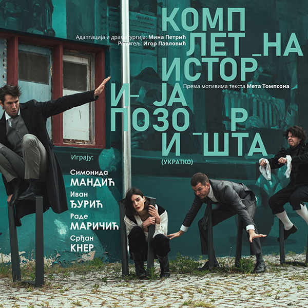 [vc_row css_animation="" row_type="row" use_row_as_full_screen_section="yes" type="full_width" angled_section="no" text_align="left" background_image_as_pattern="without_pattern" z_index=""][vc_column width="2/3"][vc_separator type="normal"][vc_column_text css=""]Представа "Комплетна историја позоришта (укратко)" настала је по мотивима текста Мета Томпсона, у копродукцији Градског позоришта Бечеј и СКЦ Нови Сад.[/vc_column_text][vc_separator type="normal"][vc_column_text css=""]Редитељ: Игор Павловић Адаптација и драматургија: Мина Петрић Играју: Симонида Мандић / Сања Микитишин,...